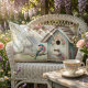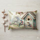 Coussin Rectangle Birdhouse Printemps Avec Fleurs Pastel Et Oiseaux