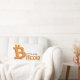 Bitcoin Cryptocurrency throw pillow with golden Bitcoin text and Bitcoin logo on backside. Deco pillow for your home for all crypto nerds and fans of bitcoin in the crypto world. Change size and colors for your personalized throw pillow. Dans crypto we trust !