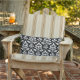 Coussin Rectangle Blanc de motif de damassé de Feuille sur le noir