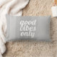 Ce devis personnalisé coussin de bonnes vibes seulement en gris et blanc moderne design rayé est disponible pour dortoir ou décoration maison. Art copyright Ann Powell tous droits réservés.