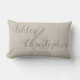 Cadeau de chaufferette ou de mariage rustique pour un couple. Oreiller décoratif personnalisé dans des tons terreux beige et bleu avec les noms des conjoints et la date. Célébrez la relation et ajoutez une touche décorative élégante à la maison. Les couleurs neutres à l'aspect naturel s'intègreront dans presque tous les styles de décoration de maison élégants et raffinés, faisant de cet oreiller charmant un choix de cadeau sûr et sophistiqué.