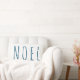 Fait le grand décor de maison de vacances pour Noël bleu à la mode. Coussin lombaire blanc avec le "noel" dans le bleu sur l'avant. Ajoutez à une chaise ou à un divan pour compléter outre de votre décor.