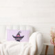 Coussin avec une amusante illustration thématique Halloween pour les amoureux de les chats. Un gros chat noir aux yeux vêtu d'un grand casquette de sorcière noire avec une ceinture rose violet autour du bord.