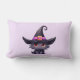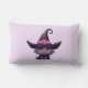 Coussin Rectangle Chat noir mignon portant un Casquette de sorcière