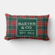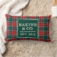 Jetez l'oreiller avec le tartan Clan Baxter, un motif écossais traditionnel en plaid dans le rouge vif et vert de la forêt avec les tons jaune et bleu clair. Comprend des champs personnalisés pour votre nom et votre date. Parfait pour une chambre familiale, le chauffage au foyer ou un cadeau mariage. Trois tailles et trois options de tissu.