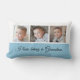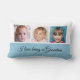 Idée cadeau, photo collage coussin. Ajoutez vos propres photos à cet oreiller à jets, Coussin Lumbar, coussin et changez le texte si vous le souhaitez. Six photos apparaissent sur ce coussin, 3 à l'avant et 3 à l'arrière. Dans l'exemple montré, le libellé "J'aime être grand-mère" est le même avant et le même arrière, mais vous avez la possibilité de changer à la fois à votre propre choix. Bleu et blanc avec texte noir.