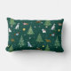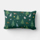 Un coussin mignon avec des dachshunds ludiques, des dalmatiens et des gaufres entourés de flocons de neige, de sapins décorés et de cadeaux festifs. Le design hivernal, dressé contre un arrière - plan vert, apporte une atmosphère de Noël joyeuse à tout endroit.