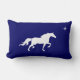 Belle élégante silhouette de cheval blanc et étoile sur arrière - plan bleu marine Lumbar Coussin.