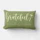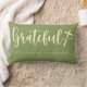 Élégant Script Moss Green Cream Grateful Lumbar Coussin - Minimaliste moss vert apaisant et palette de couleurs apaisant, design féminin avec Grateful word art. Personnaliser avec votre nom.