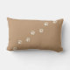 Un design simple mais charmant montrant des empreintes de pattes de chat blanc cassé se promenant de part et d'autre de ce coussin marron clair.