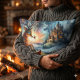 This artwork blends rich watercolor textures with dreamy fantasy elements, creating a peaceful yet imaginative scene. The balance of cool winter blues and warm amber highlights makes it especially striking as wall art in living rooms, reading nooks, nurseries, or creative studios. It also works beautifully on seasonal décor, holiday cards, throw pillows, and cozy home accents during the winter months.