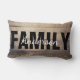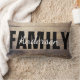 Coussin moderne de ferme classique avec le mot FAMILY en lettres noires en gras et le nom de votre famille en écriture blanche à l'intérieur du mot famille.