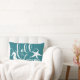 Coussin lombaire à thème côtier avec silhouettes vert océan, hippocampe blanc et étoiles de mer.
