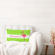 Ce coussin mignon présente un flamant rose vif sur un arrière - plan de pois verts et blancs tropicaux. Personnalisez la bande verte et blanche correspondante avec votre choix de nom ou de texte spécial.