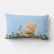 Fleurs blanches et gingembre Tabby Chat sur Coussin Lumbar bleu clair.