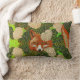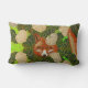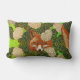 COUSSIN RECTANGLE FOX ROUGE PARMI LES FEUILLES VERTS ET LE FOLIAGE