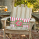 Coussin Rectangle Hibiscus rose chaud Monogramme vert citron