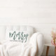 Ce design coussin de vacances tout simplement "Joyeux" dispose d'un design de script brossé vert chasseur et de monogramme personnalisé moderne texte de nom de famille en noir doux.