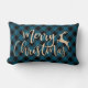 Coussin Rectangle Joyeux Noël d'or Noir et Bleu Plaid