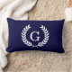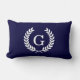 Coussin Rectangle Marine Blue What Blé Laurel Wreath Initial Monogra