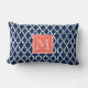 Coussin Rectangle Monogramme de corail marocain de bleu marine