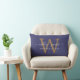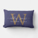 Coussin Rectangle Monogramme doré Date du mariage Bleu marine