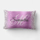 Créez votre propre parties scintillant en argent brillant et coussin lave rose brillant violet sombre en feuille satinée lombaire. Les graphismes brillants sont des caractéristiques sur les bords droit et gauche. L'avant est doté d'un monogramme de script de calligraphie noir et blanc. Vous pouvez customiser la couleur et le style de police. Tous les éléments graphiques et graphiques girly de ce design seront imprimés comme une photo numérique.