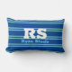 Coussin Rectangle Monogramme & nom en gras, Lt Lignes Turquoises sur