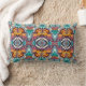 Lumbar Coussin dans un batik numérique motif de grands papillons sur un arrière - plan médaillon orné, arabesque, dans les tons ambre, orange, aqua et beige