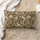 Lumbar coussin dans un William Morris, papier peint Art Nouveau design de faisans et lièvres sertis entre feuilles, vignes et fleurs - beige sur un arrière - plan chocolat