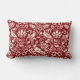 Lumbar coussin dans un William Morris, fond d'écran Art Nouveau design de faisans et lièvres sertis entre feuilles, vignes et fleurs - crème / blanc d'hiver sur un profond arrière - plan chinois rouge