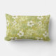Cet oreiller rectangulaire à jetons présente des fleurs et des feuilles dans les tons blanc, vert clair et jaune pâle.