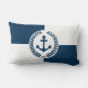 Nautical themed design with anchor and laurel wreath decoration over blue and white geometric background