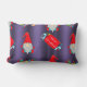 Un coussin de Noël très mignon pour décorer votre maison pendant la saison des Fêtes à venir. Ce mignon motif des gnomes et elfes de Noël ont des bas de Noël et le salut, "Joyeux Noël" sur des panneaux rouges avec des sucres de canne, le tout sur un arrière - plan violet.