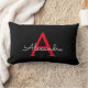 Monogramme rouge et noir Ajoutez votre propre nom Lumbar Coussin. Cela rend le cadeau parfait pour 16 ans, mariage, douche nuptiale, anniversaire, baby shower ou bachelorette pour quelqu'un qui aime le luxe glam et les styles chic.