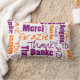 Coussin Rectangle Nuage de mots de Merci violet et orange