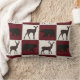 Coussin Rectangle Ours et cerfs rustiques, rouge foncé et Carrés de