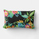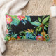 Coussin Rectangle Palmiers tropicaux et aquarelle florale Noir