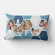 Coussin photo Honeypeb - modifiable pour n'importe quel nom de 4 lettres, tel que PAPA et personnalisé avec 5 de vos photos préférées, qui sont affichés comme collage photo forme hexagone. La motif géométrique en nid d'abeille est dans les tons bleu et blanc. Pour des couleurs alternatives et des noms de longueur différents, veuillez naviguer dans mon magasin dans la collection Honeycomb Photo Collage.