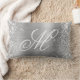 Créez votre propre parties scintillant argent brillant et coussin lombaire brillant gris argenté ombre satiné brillant. Les graphismes brillants sont des caractéristiques sur les bords droit et gauche. L'avant présente un chic monogramme de script de calligraphie blanche. Vous pouvez customiser la couleur et le style de police. Tous les éléments graphiques et graphiques girly de ce design seront imprimés comme une photo numérique. Design argenté, gris, noir et blanc.