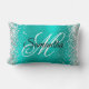 Créez votre propre parties scintillant en argent brillant et coussin lombaire en feuille de satin turquoise brillant. Les graphismes brillants sont des caractéristiques sur les bords droit et gauche. L'avant est doté d'un monogramme de script de calligraphie noir et blanc. Vous pouvez customiser la couleur et le style de police. Tous les éléments graphiques et graphiques girly de ce design seront imprimés comme une photo numérique.