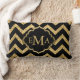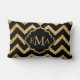 Elégante parties scintillant dorée et motif de chevron de zigzag géométrique noir avec monogramme. Modèle coussin d'accent personnalisable