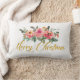 Coussin Rectangle Pink and Green Floral Ajouter un nom Joyeux Noël