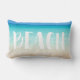 Parfait pour votre espace détente, cet oreiller de plage photographié met l'accent sur la décoration de votre maison. Cette maison de bord de mer ou de plage dispose du mot "plage" imprimé sur la photo bleue de l'océan.