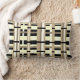 Cette coussin est moderne et présente une touche de couleur taupe, tan, noir et blanc.