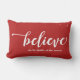 Élégant et amusant, ce coussin est le moyen idéal pour ajouter un peu d'esprit de vacances à votre maison. Dispose d'un arrière - plan rouge avec des étoiles blanches entourant le script blanc "croire" la magie de la saison. Joyeux Noël.