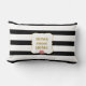 Coussin Rectangle Rose rose sur noir et blanc rayé