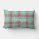 Coussin élégant chic accent plaid dans des couleurs vives modernes de vacances, rouge et turquoise. Le design comprend un motif de tweed de couches superposées qui entrelacent les couleurs de base individuelles et une texture graphique claire pour créer un look plus doux, flanelle comme. Grandes lignes de texte centrées dans une police de caractères calligraphiques pour le nom de famille ou le sentiment court (par exemple, "Merci", "Joyeuses fêtes"). Une ligne de texte secondaire dans une police sans serif minimaliste sous pour les dates, les noms, etc. (laissez vide pour supprimer). Le dos du coussin plaid motif seulement. Magnifique accessoire décoratif qui peut être personnalisé pour un quotidien ou une occasion spéciale.