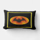Ce coussin déco ferait un grand ajout à votre décor de vacances. Conçu avec une chauve-souris en vol contre un ovale rouge et orange. L'envers a le signe "Halloween" imprimé en gros caractères effrayants. Une bordure jaune a été ajoutée. Un dossier noir est fait de chaque côté. Ces coussins sont disponibles en styles, tissus et tailles assortis.