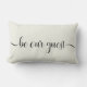 Modern trendy script calligraphy with flourishes reading "Be our guest" on this elegant black and ivory lumbar throw pillow, perfect to welcome guests to your home, vacation rental, or bed and breakfast.